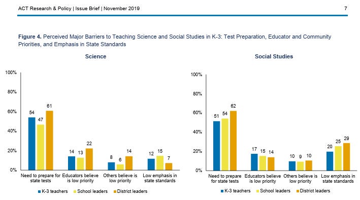 From “Educators’ Beliefs about Teaching Science and Social Studies in K-3” by Chrys Dougherty, PhD, and Raeal Moore, PhD from ACT Research & Policy Issue Brief, November 2019