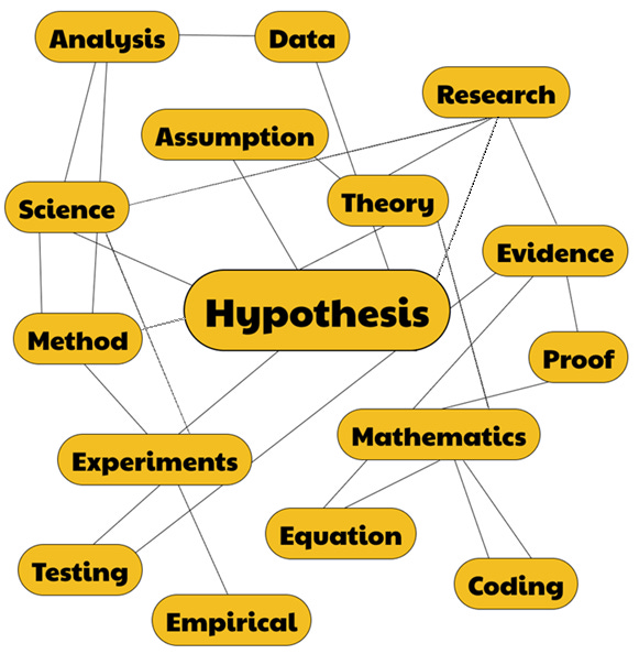 For example, the word hypothesis has a strong connection to science. Other words like method, experiments, and research also have a strong connection to science, and so our brains will also link them to hypothesis.